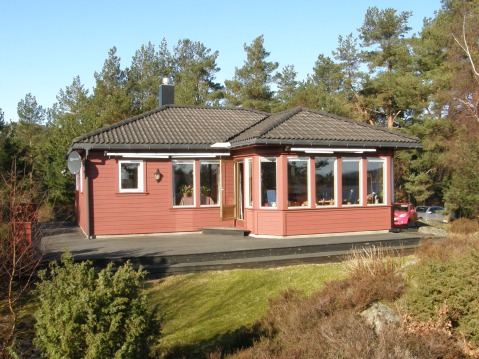Ligger ca.20 km vest for Mandal.En velutstyrt hytte på en stor naturtomt med panorama utsikt over sjøen.